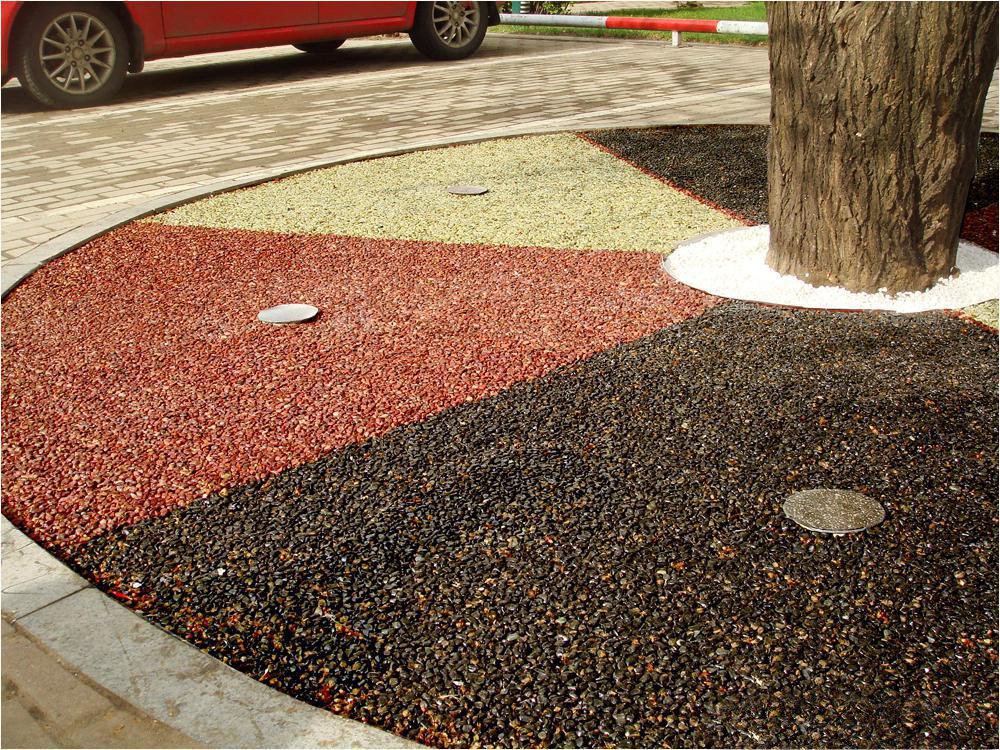 膠粘石透水路面是由改性高分子樹脂為膠結(jié)材料,將天然彩石、拋光色石、玻璃、水晶石、人造骨料等牢固地粘接在一起,鋪設(shè)在混凝土、透水混凝土、瀝青或級配砂石基層上的生態(tài)景觀地面鋪設(shè)材料,具有高效透水、自然美觀、色彩多樣、經(jīng)久耐用等特點。可用于透水性景觀道路、車型或人行道、公園和廣場等場所,也可應(yīng)用到室內(nèi)場所。
