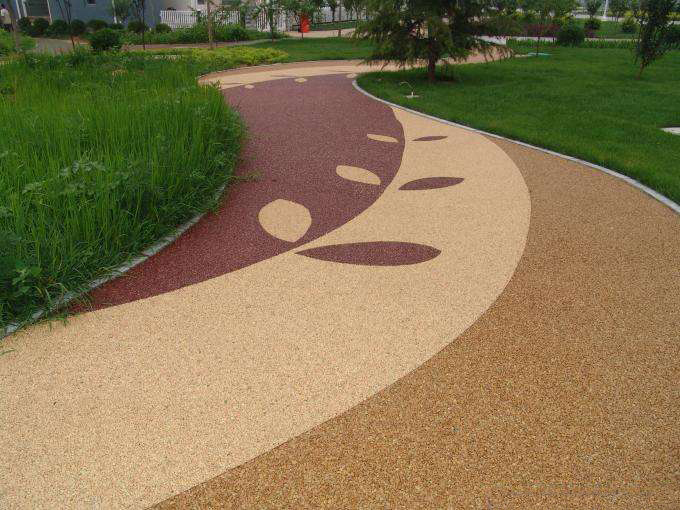 露骨料透水混凝土是以膠結(jié)料為粘合材料,將一定粒級(jí)的骨料粘合在一起形成多孔型鋪面,它以透水混凝土為基層,構(gòu)成的一種透水鋪裝地面。其特點(diǎn)是運(yùn)用天然石頭自身的色彩、形狀以及潤(rùn)濕的光澤效果,使面層骨料實(shí)現(xiàn)自然鋪面效果。